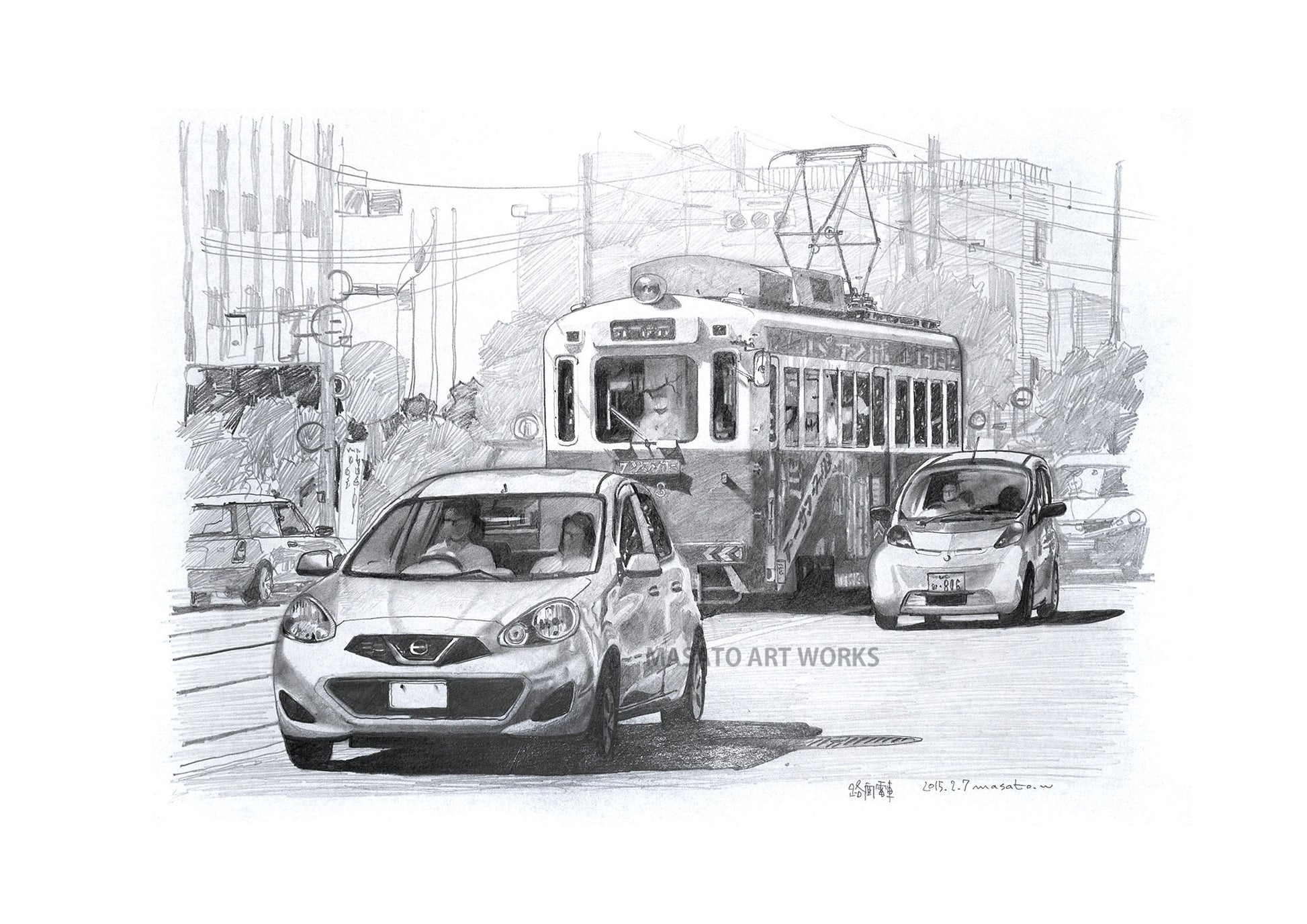 鉛筆で描いた風景スケッチのアートプリントです。